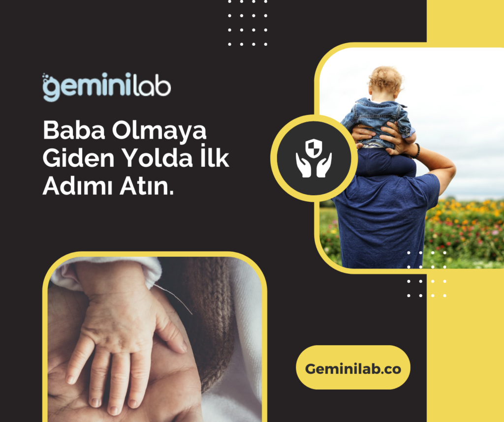 Baba olmaya giden yolda ilk adımınızı güvenle GeminiLab aracılığıyla atabilir, sperm testi yaptırabilirsiniz. İlgili sperm testini kitini, https://geminilab.co/siparis sayfası aracılığıyla temin edebilirsiniz. Kitiniz hazır olduktan sonra sizden teslim alınır laboratuvara getirilir. Uzman ekip gerekli inceleme ardından detaylı raporunuz hesabınıza yüklenmektedir. Adınızın dahi gizli tutulduğu size özel ekran sayesinde sperm testi sonuçlarınızı kolay bir şekilde inceleyebilir, online doktor görüşmesiyle aklınıza takılan soruları sorabilirsiniz.